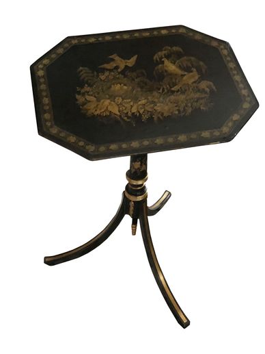 Paper mache and black gilt lacquered chinoiserie decorated occasional table. With birds and florals.